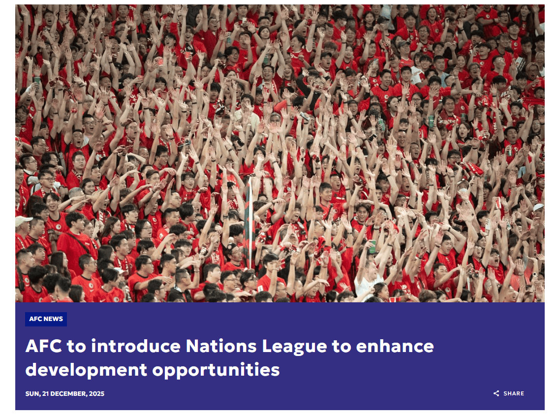 北京时间12月21日消息,亚足联官方宣布,计划在未来一段时间引入“亚足联国家联赛”(亚国联),以增加其成员协会的发展机会,并建立一个更结构化和可持续的国际比赛框架。